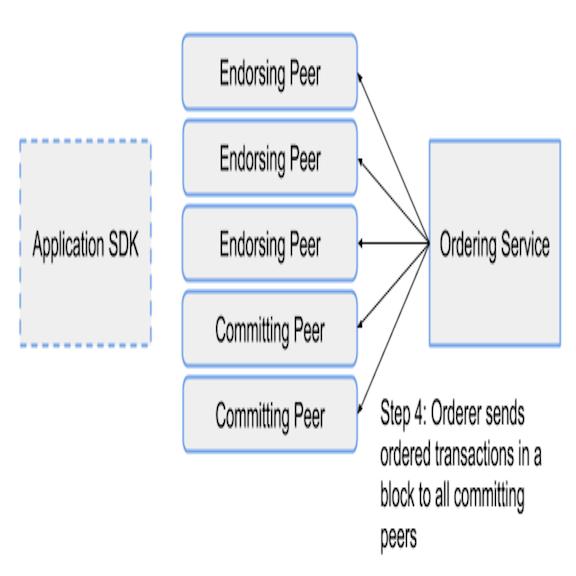 4,Ordering Node对交易进行排序,然后传给Committing Peer。