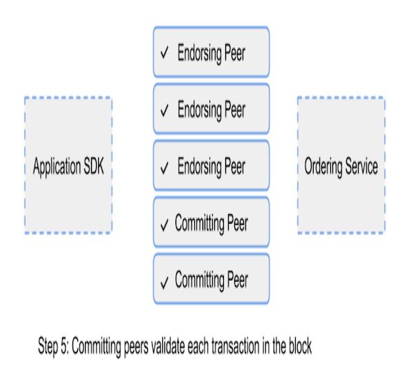 5,Committing Peer这里将排序好的交易进行验证,并打包,通过指定的共识算法达成一致,形成新的区块。